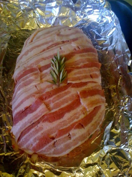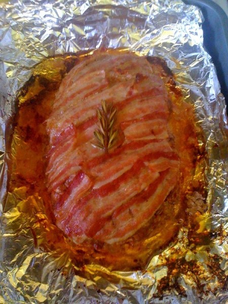 Over the years my meatloaf recipe has evolved to include different herbs and ingredients. I’m not even sure how the typical recipe goes, but here goes. This is what I’ve used in this bacon wrapped meatloaf: