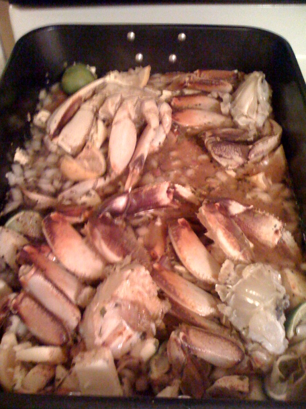 This is my finished crab, soaking in the juices. The flavor of that crab marinade is really good. You are going to want to use that for the crab and to dip bread.