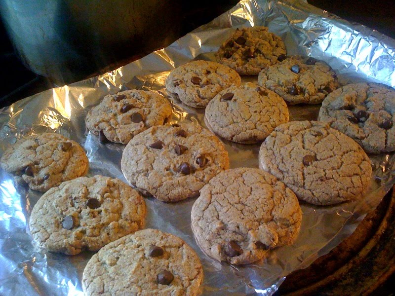 I hate to brag, but these are some of the best cookies I have ever made. Some people have said that they are the best chocolate chip cookies, because of the blended oatmeal. They are unique, but easy to make. These soft hearty cookies are best when made bigger. You can add walnuts or different flavored things like toffee chips or white chocolate chunks.