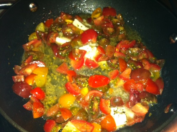 Who doesn’t love some Cherry Heirloom Tomatoes? These colorful little sweet tomatoes are fun to cook with. I bought some of these beautiful little babies a couple weeks ago and was inspired to make a fresh sauce from scratch. I added: