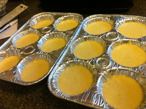 Combine all ingredients in a bowl, stirring for about 3 minutes. Batter will be a little lumpy but smooth. Pour into buttered muffin tins and bake for 10 minutes until golden, fluffy and delicious.