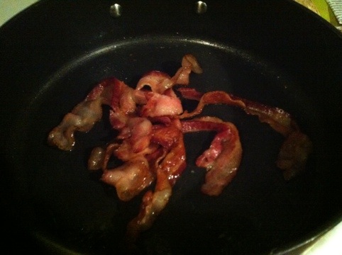 Reduce heat to low, add bacon bits and simmer for up to 20 minutes. For thicker sauce, simmer longer, and for thinner, less time is needed.