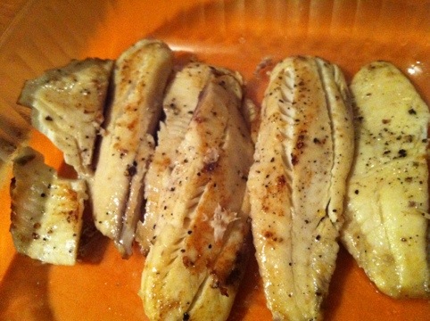 - 2-4 filets of Tilapia, Sea Bass, Halibut or any white fish.