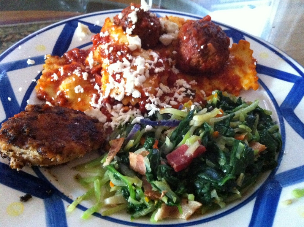 September 4, 2012 This Girl Really Cooks Turkey Meatballs with Ravioli, broccoli slaw with bacon and spinach sauteed Share this: Click to share on X (Opens in new window) X Click to share on Facebook (Opens in new window) Facebook Like Loading... Related