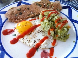 While I love fried eggs with anything, I love them with rice. I make this cilantro rice. Can be made for breakfast, lunch or dinner.
