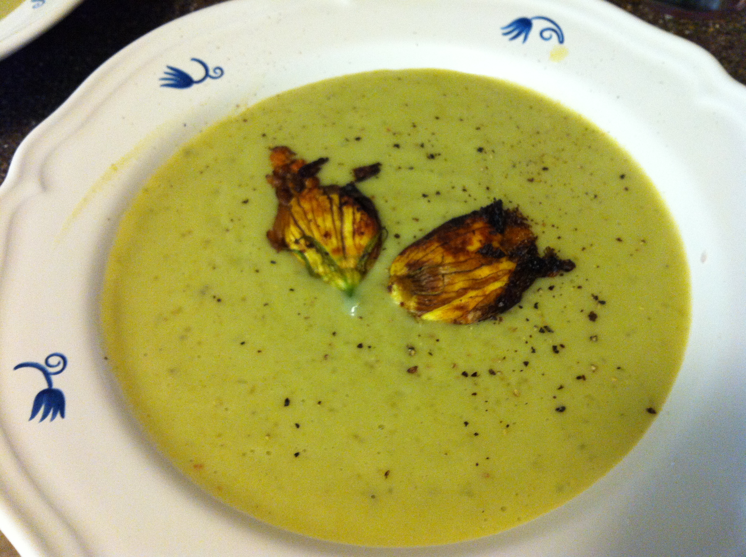 - Place squash blossoms on top of soup or just enjoy with a little cracked salt and pepper.