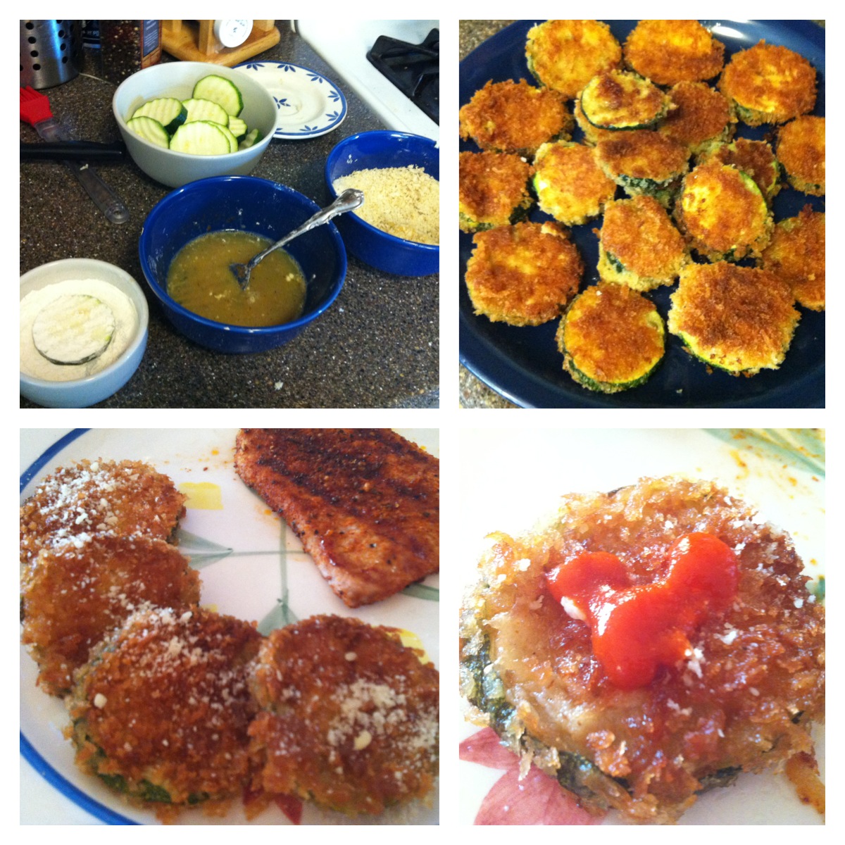 Panko Fried Zucchini Rounds were a hit around here and super easy to make. They are a balance between healthy and tasty fried snack. Consider each portion to be 1/2 to 3/4 of a medium zucchini (5-7 pieces), makes about 4.