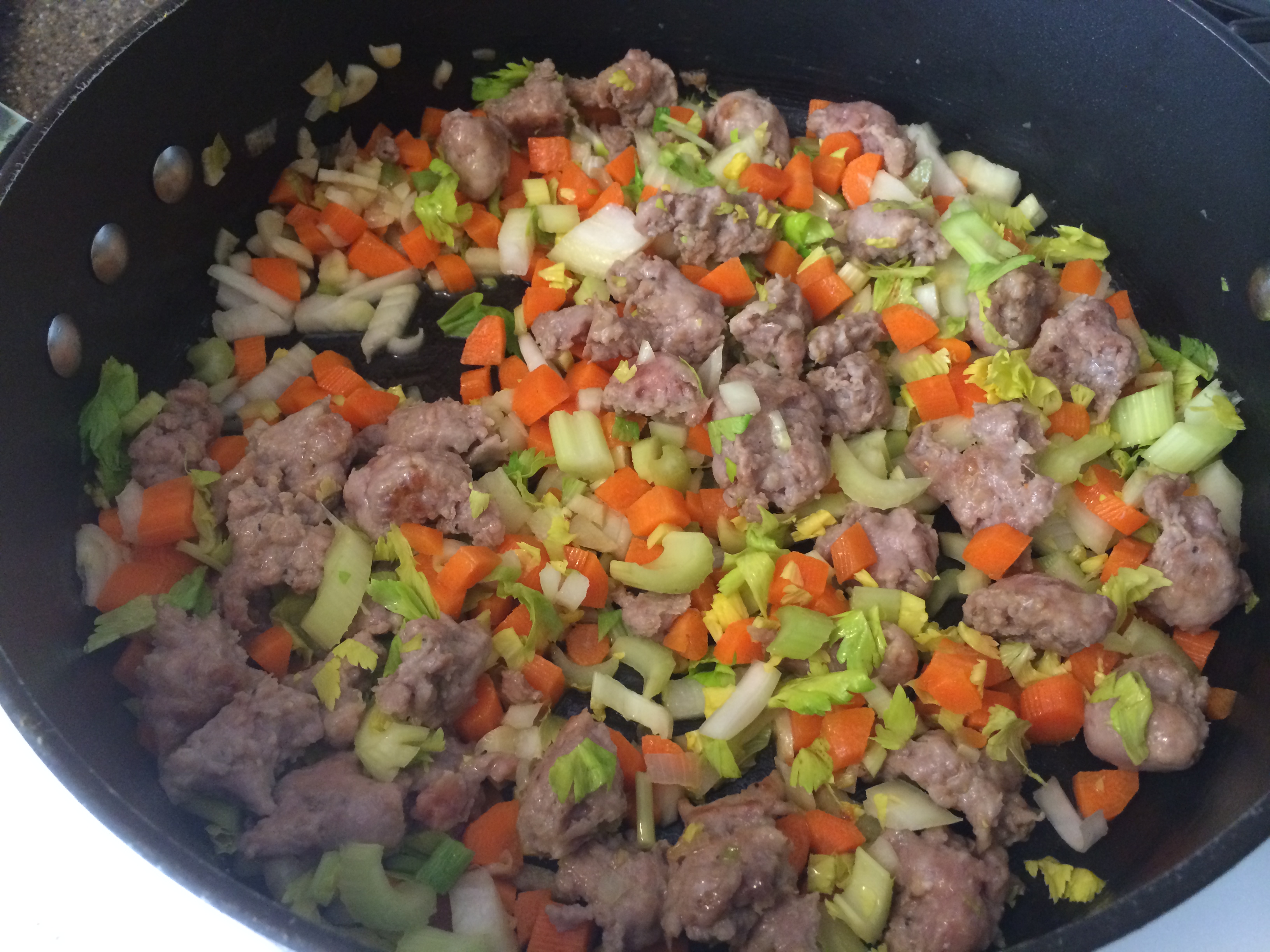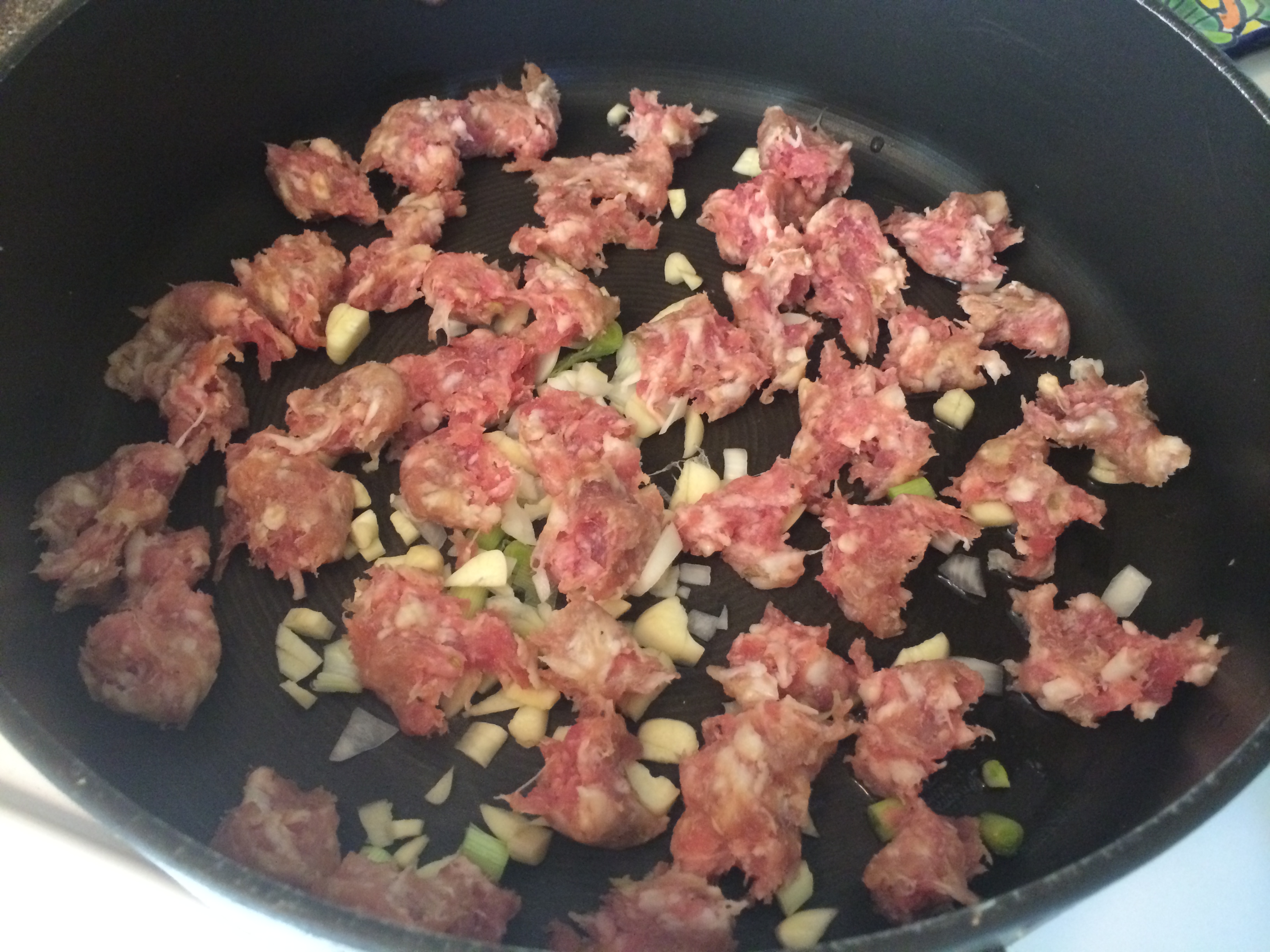 - Heat a large pot with a little olive oil, add garlic and onion.