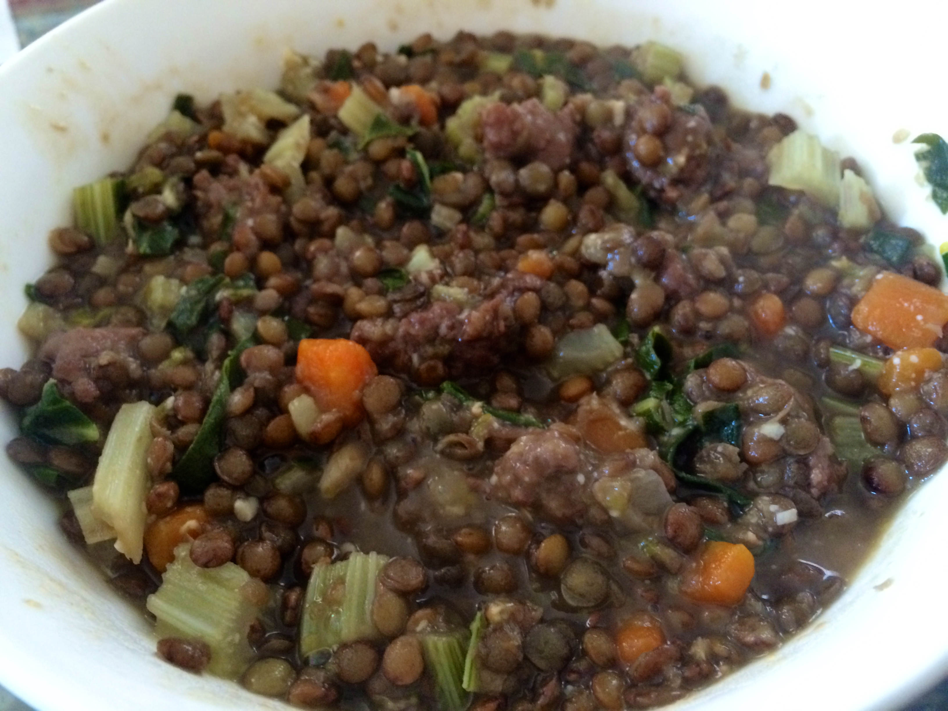Today I made this delicious lentil soup with sausage, vegetables and swiss chard. I was so inspired by the flavors, I decided to post it right away.