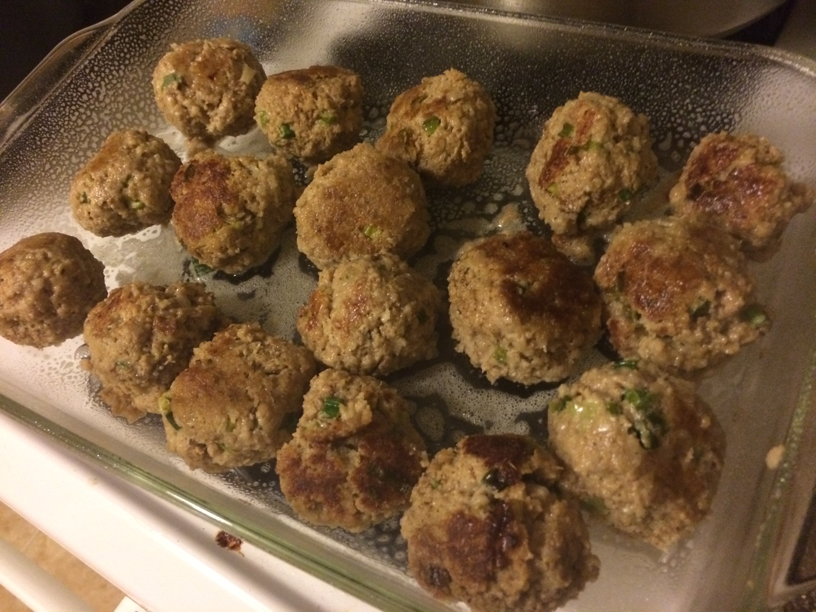 I wanted to make some turkey meatballs and came up with this recipe trying to make the meatballs as moist as possible for turkey. It’s a three step cooking process that works well with the zucchini ribbons as a side instead of pasta.